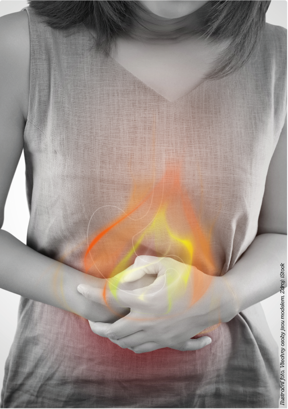 Typickými příznaky GERD jsou pyróza (cca v 80 %) a regurgitace (cca v 60 %) žaludečního obsahu do jícnu, ev. do dutiny ústní. Někteří nemocní udávají nepříjemný bolestivý pocit za hrudní kostí, a to buď jako samostatný symptom, což může představovat problém v odlišení od kardiální bolesti, nebo ve vazbě na pálení žáhy či regurgitaci. Je třeba zdůraznit, že symptomy GERD jsou nespecifické a můžeme je pozorovat rovněž u nemocných s paraezofageální hernií, s eozinofilní ezofagitidou, ruminací, achalázií nebo v souvislosti s onemocněním srdce a plic.1 Mimojícnové projevy GERD zahrnují laryngeální a plicní symptomy, jako je chronický kašel, chrapot, bolest v krku, faryngitida, laryngitida, ale i plicní fibróza. Pozorovali jsme nemocné s příznaky asthma bronchiale, kdy plicní symptomy příznivě reagovaly na úspěšnou terapii gastroezofageálního refluxu, stejně tak jako nemocné s extraezofageální manifestací, kde symptomy antirefluxní léčbou ovlivněny nebyly. V takovém případě se uvažuje o možném tzv. syndromu hypersenzitivity, kde reflux patří mezi možné indukční činitele potíží.